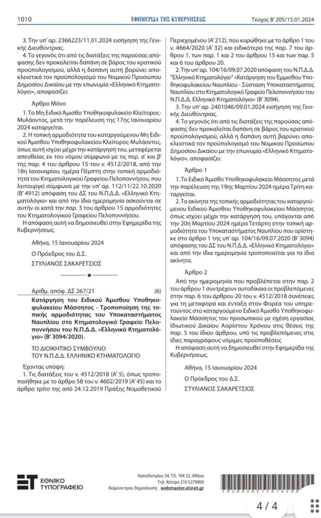 Μιας και χρησιμοποιήθηκε από τον Δήμαρχο Ερμιονίδας η λέξη «μεταχρονολογημένα», ας δούμε την εφαρμογή της στο θέμα του Υποθηκοφυλακείου Μάσσητος στην Ερμιονίδα. Η απόφαση του Διοικητικού Συμβουλίου του ¨Ελληνικού Κτηματολογίου¨ για την κατάργηση του Ειδικού Άμισθου Υποθηκοφυλακείου Μάσσητος λήφθηκε στις 15 Ιανουαρίου 2024 και οριζόταν ότι η ισχύς της θα ήταν από 19 Μαρτίου 2024. Η Δημοτική Αρχή Ερμιονίδας έφερε το θέμα στο Δημοτικό Συμβούλιο του Δήμου Ερμιονίδας για την έκδοση ψηφίσματος, που αφορούσε την διατήρησή του Υποθηκοφυλακείου Μάσσητος, στις 5 Μαρτίου 2024, δηλαδή κατόπιν εορτής και αφού είχε ήδη εκδοθεί το σχετικό Φ.Ε.Κ της κατάργησης (Φ.Ε.Κ Β205/21/15-01-2024). Είναι προφανές λοιπόν ποιος πρέπει να κατανοήσει τη ρήση ¨κάθε πράγμα στον καιρό του…¨. Στο ίδιο ψήφισμα αναφέρεται στην παρ. 5 « Να συγκροτηθεί Διαπαραταξιακή Επιτροπή αποτελούμενη από Δημοτικούς Συμβούλους της πλειοψηφίας και της μειοψηφίας ώστε να προωθήσει τα παραπάνω αιτήματα μας στο αρμόδιο Υπουργείο». Η επιτροπή αυτή δεν συστήθηκε ποτέ, οι Δημοτικοί Σύμβουλοι της αντιπολίτευσης δεν κληθήκαμε ποτέ, εν τέλει δεν λειτούργησε ποτέ. Η παράθεση άσχετων υποθέσεων με το θέμα δεν μπερδεύει τους πολίτες.